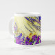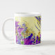 Eine abstrakte Gestaltung des Flusses mit Sonnenlicht, das auf dem Wasser und lila Blattwerk reflektiert.