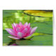 Diese Anmerkungskarte kennzeichnet eine vorzügliche rosa Wasserlilie, die auf kreisförmigen grünen Lilienauflagen stillsteht. Leuchtende goldene Wasserreflexionen glühen zwischen die Auflagen von diesem reizenden Teich. Innerhalb ist eine andere kleine Wasserlilie.