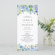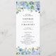 Wassercolor Blue Hydrangea Blumengarland Hochzeit Programm