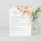 Wasserfarbe Boho Floral Pampas Gras Hochzeitsessen Menü. Schönes rosafarbenes botanisches Blume-Muster auf der Kartenrückseite. Diese Karte ist die perfekte Wahl für Hochzeitsfeiern, Hochzeitsfeiern oder Hochzeitsfeiern.