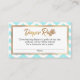 Hier finden Sie eine raffinierte und trendige Option für Ihre Babydusche-Windelpreisverlosung. Dieses Design wurde mit einem Aqua-und weißen fett Zickzack Muster und ein Imitat vergoldeten Folie ombre Metallic Header Text verziert. Hinter einem weißen Abzeichen, das in zwei zarten Imitat-Gold-Rändern umrissen ist, habe ich den Hintergrund im Zickzack Weiß abgedeckt. Sie können die Aquamarine in eine beliebige Farbe ändern, indem Sie einfach die Werkzeuge von Zazzle verwenden, um die Hintergrundfarbe zu ändern. Auf der Vorderseite liest ein feiner Header "Diaper Raffle" in einem eleganten Script-Schriftart, den ich als Grafik-Overlay hinzugefügt habe. Diese Textebene wurde im glatten Goldfolieneffekt veredelt. Unten habe ich eine editierbare Nachricht hinzugefügt: "Komm mit Windeln in Päckchen jeder Größe, und dein Name wird eingetragen, um einen Preis zu gewinnen!" dann eine Zeile für die Namen der Teilnehmer, auf der geschrieben werden soll. Bitte zögern Sie nicht, zu erreichen, wenn Sie Hilfe benötigen. // 89 // Designed by Melody Watson for Paper Muserie.