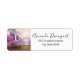 Adressetiketten mit einem landschaftlichen Bild eines friedlichen lila Sees. Umgeben von üppigen Kirschbäumen und Wasserfällen.