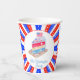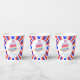 Das ist ein Party Papier Becher mit einer Aquarell 4. Juli Kuchen mit den roten, weißen und blauen Streifen und Sternen.