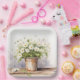 Daisy Bouquet in einem alten Topf mit Aquarelleffekt.