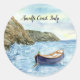 Wasserfarbe eines Row-Bootes an der Küste von Amal Runder Aufkleber