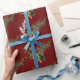 Das festliche und winterliche Verpackungspapier für den Urlaub zeichnet sich durch ein Aquarellmuster immergrüner Äste mit Pineconen auf Cranberry-Rot-Hintergrund aus.