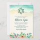 Das elegante Strandhotel Bat Mitzvah lädt zum Verweilen ein. Das Design umfasst tropische Aquarellfarben, Star of David und Meereswellen am Sand.