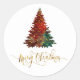 Watercolor Gold Frohe Weihnachtsbaum Design Klassischer Rundaufkleber