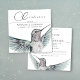 Ein handbemalter Aquarellhummingvogel mit atemberaubenden Details und subtilen Farbtönen von Aqua und Rose schmückt dieses einzigartige, delikate und liebevolle Fest des Lebens in Schwarz und Weiß