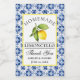 Wasserfarbe Lemon Blauer Tile Limoncello Mini Labe Weinetikett