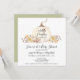 Schöne Aquarellfarbe weiß Kürbis mit Herbstblumen und Herbstblättern Blätter Baby Dusche Einladung. Der Text "Ein kleiner Kürbis ist unterwegs" ist ein Schriftzeichen-Typografie-Design. Die Farbe der Rückseite kann geändert werden, wie in einem geschlechtsneutralen, mutierten Salbei-Grün dargestellt. Kunstwerk und Grafik-Design, erstellt von international lizenzierten Künstler und Designer, Audrey Jeanne Roberts, Copyright.