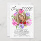Erinnert an Spaziergänge im Sommer- oder Frühjahrsgarten, der frische Geruch und die faszinierende Schönheit der Blume aus Pfirsich, die in Aquarellfarben als Rahmen für die verwischte weibliche Absolventin gefangen wurden. Abschluss Einladung für sie, Mädchen mit hübschen und modernen Drehbüchern und Blumenmotiven.