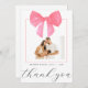 Sagen Sie, dass Sie zu Freunden und Familie für das Besuch Ihres Baby-Dusche mit diesen rosa Bogen Thema danke Karten. Das Design beinhaltet Ihr Lieblings-Baby-Foto, einen "Dankeschön"-Header in eleganter Schrift-Kalligrafie und den Namen und das Geburtsdatum Ihres Babys in elegantem Schriftart. Das Foto ist von einem zarten quadratischen Rahmen umgeben und von einem niedlichen rosa Wasserbogenbogen gekrönt, was ihm ein Aussehen einer Geschenkboxen verleiht! Einfach und fantasievoll! Die Rückseite zeigt Ihre individuelle Danksagung Nachricht. Nutzen Sie die intuitiven Designwerkzeuge, Ihre Lieblings-Fotos und Ihre Inspiration und machen Sie diese minimalistische, elegante Foto Babydusche / Geburtsankündigung dank Ihrer Karte einzigartig!