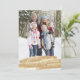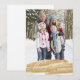 Dieses Design zeichnet sich durch einen goldenen Pinselstrich in Aquarellfarbe über den unteren Teil der Karte aus, der mit den Worten Frohe Weihnachten in einem Schriftart mit weißem Schrift überschrieben wurde.