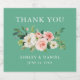 Elegante Watercolor Rosa Blütengrün Hochzeit Danke Wein & Sekt Label beinhaltet rosa weiße Rosen und andere schöne grüne. Neo Mint Hintergrund.