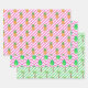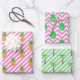 Wasserfarbe Rosa grüner Streifen Zickzack Sommerst Geschenkpapier Set