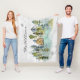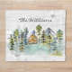 In der Watercolor Rustic Foggy Forest Mountain Hütte Fleece Blanket mit Aquarellkabine eingebettet in einem nebeligen grünen Pinienwald. Ideal für die Vermietung von Ferienhaus, Lodge, Seehaus und Hütte.