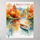 Wasserfarbe Rustikaler Herbstsee mit Rowboat & Bäu Poster