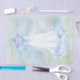 Weiße Passform und flaches, langes Gewand mit blauen Spaghetti-Gurten auf einem Hangar mit blauen und violetten Aquarellbildern