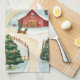 Wasserfarbe Winter Rustikale Landschaft mit Bäumen Geschirrtuch