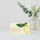 Diese eleganten Visitenkarten zeigen ein Zitronenmotiv auf einem hellgelben Hintergrund. Auf der rechten Seite befindet sich eine große Zitrone im Aquarellstil, die mit einem Unternehmen- oder Firmennamen und einem Mitarbeiternamen auf dem links Zitrusfarben Orange und Grün des Schriftartes versehen ist.