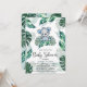 Babydusche mit niedlichem Wasserfarben-Babybär auf tropischen Blätter und tropischen Rahmen. Personalisieren Sie Ihre Daten in trendigen Hauptstadt-Schriften.