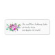 Lila und violettes Blumenadressen-Etikett, das auf Ihre Veranstaltungsspezifikationen zugeschnitten ist.