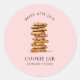 Fügen Sie Ihrer Backverpackung eine Touch von Whimsy und Personalisierung mit unseren maßgeschneiderten Wasserfarben-Schokoladenkekochen-Aufklebern hinzu. Diese zauberhaften Aufkleber verfügen über einen Stapel köstlich aussehender Schokoladenkekse auf einem hübschen rosa Hintergrund. Ideal für Bäckereien, Backwaren, Konditoreien, Koch und Zuhause.