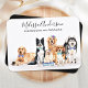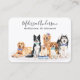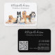 Mit diesen eleganten und modernen Hundezüchtern, die HundehundehüttenhändlerVisitenkarten und passenden Accessoires entwerfen, können Sie Ihr Hundehackengeschäft abhalten. Diese Visitenkarten für Haustiere sind mit Aquarellhunden, Golden Retriever, gelbem Labrador, Grenzkollie, Beagle, Huskymalamute und einem niedlichen kleinen Spitz ausgestattet, die alle in Bogen und blauen, aquamarinen und lila Blumen gekleidet sind. Personalisieren Sie diese HundehändlerVisitenkarten mit Firmennamen, Titel/Firmennamen und allen Kontaktdaten und Ihrem QR-Code Ihrer Website. Diese Visitenkarten für Haustiere eignen sich perfekt für Hundeschuhwanderer, Hundepflegerinnen, Haustierer, Tierärzte und Tierärzte sowie für alle Pflegeberufe." Die Visitenkarte ist zweiseitig. COPYRIGHT © 2020 Judy Burrows, Black Dog Art - Alle Rechte vorbehalten. Wasserfarben-Dog-Walker-Begleiter QR-Code-Visitenkarte des Gürtels