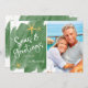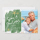 Das minimalistische Seas & Greetings-Urlaubskarten-Design der Nautical Boutique Co. zeichnet sich durch moderne handgeschriebene Schrift-Typografie und Ihr beliebtes Portrait-Foto (12x18 Ratio) aus. Das Design ist mit Aquarellgoldklecksen und Aquarellsternchen, für einen lustigen tropischen Strandurlaub Thema, und ist Set auf einem reichen Weihnachtsgrün Aquarell Splash Hintergrund. #SeasAndGreetings #HolidayCards #TropicalHolidays