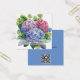 Eine Visitenkarte mit den Blume Hydrangea in Aquarell, lila und blau.