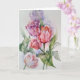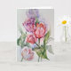 Delikate Tulpen in rosa und lila Farbtönen sind wunderschön mit sanften grünen Blätter eingerichtet und zeigen einen sanften Aquarellstil. Die Farbmischung schafft eine harmonische und ruhige Blumenkomposition.