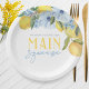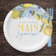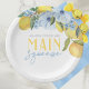 Elegant und süß Lemon Weiß hat sie ihre wichtigsten Squeeze Personalisierten Papier Teller gefunden. Passen Sie den Namen der Braut an. Freuen Sie sich auf hübsche, rosafarbene Blume aus Schieferblau und süß-gelbe Zitronen.