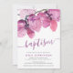 Eine wunderschöne Taufveranstaltung für Ihr kleines Mädchen mit einem großen lila Orchideenzweig, mit "Taufe" im modernen Kalligraphie-Script-Schriftart und den Veranstaltungsdetails in dunkelgrauem und lila Sans-Serif-Schriftart. Das Gegenteil ist lila.