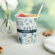 Wasserfarbenblau auf hellgrauem, floralem, kundens pappbecher
