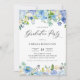 Mit diesem individuell gestaltbaren Abschluss laden wir Sie zu Ihrer Veranstaltung ein. Es verfügt über blühende, blaue, lila-weiße Rosen, Anemone und Hydrangeas in Aquarelltönen. Personalisieren Sie diese blumengeschmückte Einladung, indem Sie Ihre Veranstaltungsdetails hinzufügen. Diese Einladung von Hydrangea Abschluss ist perfekt für die Frühlings- und Winterabschlussfeiern.