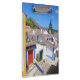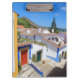 Aquarell mediterranes Dorf mit weißen Häusern und roten Fliesen mit Blick auf die Straße in Portugal