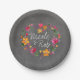 Wasserfarbene Blume Herzkranz | Kalkboard grau Pappteller
