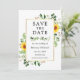 Moderne Eukalyptus Greenery Sonnenblumen Goldrahmen Save the Date Verlobung Announcement Card