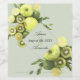 Frische und grüne Aquarellkunst mit grünen Äpfeln, Limetten und Kiwis in einem schönen Arrangement mit gerahmten Namen und Hochzeitstag für Gastgeschenke Hochzeiten oder Jubiläum. Mit einer anpassbaren Hintergrund- und Abzeichen-Farbe, personalisieren Sie durch Ändern der Namen und das Datum.