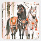 Wasserfarbene Pferde in Herbstblättern: Gemütliche Quadratischer Aufkleber