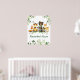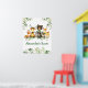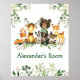 Watercolor Woodland Tiere Zimmer Poster Print. Zu den Kleinkindern zählen Bären mit grünem Bow, Hirsch, Elch, Raccoon, Kaninchen, Fox und Owl auf Eukalyptus-Blätter und Waldpflanzen. Name hinzufügen.