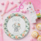 Aquareller kleine Erdnuss Geburtstagsfeier Teller. Mit feinen, wasserfarbenen Elefantenbildern und atemberaubenden Blumendetails. Teil einer Sammlung.