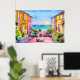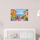 Das bezaubernde, von der AI generierte Party-Poster mit digitaler Aquarellkunst zeigt ein Badedorf mit bunten, zweistöckigen Zuhause, Blume und Segelbooten bei Sonnenuntergang. "Happy Birthday"-Begrüßung ist anpassbar