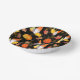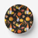 Das ist eine lustige fall Papier Schüssel mit Gnomen, Kürbis und Blätter in Herbstfarben auf einem schwarzen Hintergrund. Ideal für Erntedank oder jedes andere Party, das Sie in der Herbstsaison haben werden.