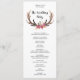 Rustikales Hochzeitsprogramm mit Aquarell-Hirschantlern und Blume aus der Sammlung "Die Jagd ist vorbei". Ideal für Hochzeiten in der Scheune und für böhmische Party.