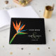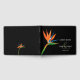 Eleganter tropischer Vogel paradiesischer Blume auf schwarzem Hintergrund betont dieses Gästebuch mit Ihren Details in schicken Schriften auf der Vorderseite und dem Rücken. PASSENDE Artikel in unserem Geschäft.