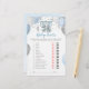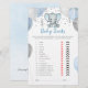 Dieses Baby zeichnet sich durch eine Duschspielkarte aus, die mit einem blauen und grauen Elefanten für den kleinen Baby mit Ballons und Konfetti ausgestattet ist. Sie können die Fragen des Spiels personalisieren, indem Sie auf den Button "Anpassen" klicken.