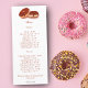 Charmantes Doughnut Design perfekt für Bäcker, Kuchendekoratoren, Bäckereifachleute und Zuhause Bakers! Mit köstlichen Schokoladenglasur-Donuts Illustrationen von Daphsam. Wählen Sie aus einer Speisekarte mit Ihren Backwaren und Preisen.