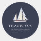 Schönes Segelboot mit Aquarellfarbe, Aufkleber mit maritim blauem Hintergrund.